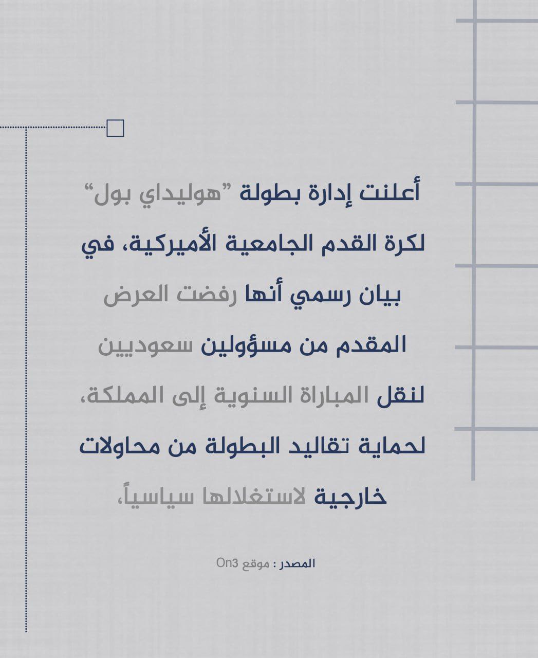 #متداول: إدارة بطولة “هوليداي بول” ترفض طلب السعودية نقل المباراة إليها