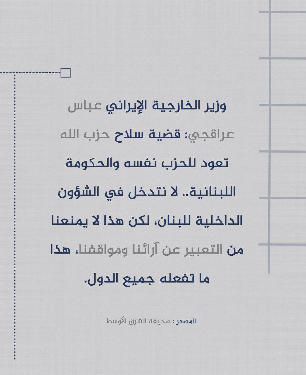 #متداول: وزير الخارجية الإيراني يؤكد أن قضية سلاح المقاومة تخصها
