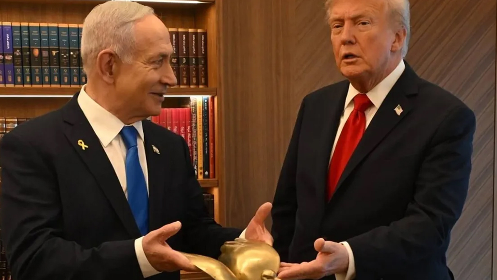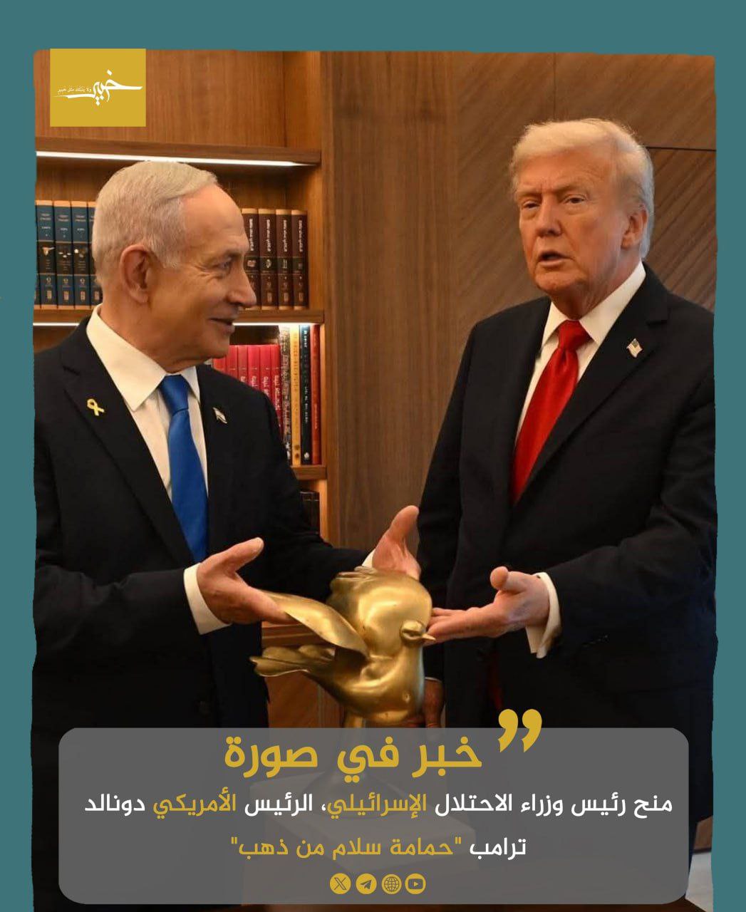 #خبر_في_صورة: نتنياهو يُهدي ترامب حمامة من ذهب