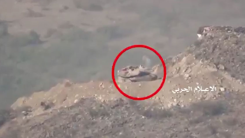 "#أنصار_الله" ينشرون مقطعا مصورا لإعطاب دبابة أبرامز سعودية