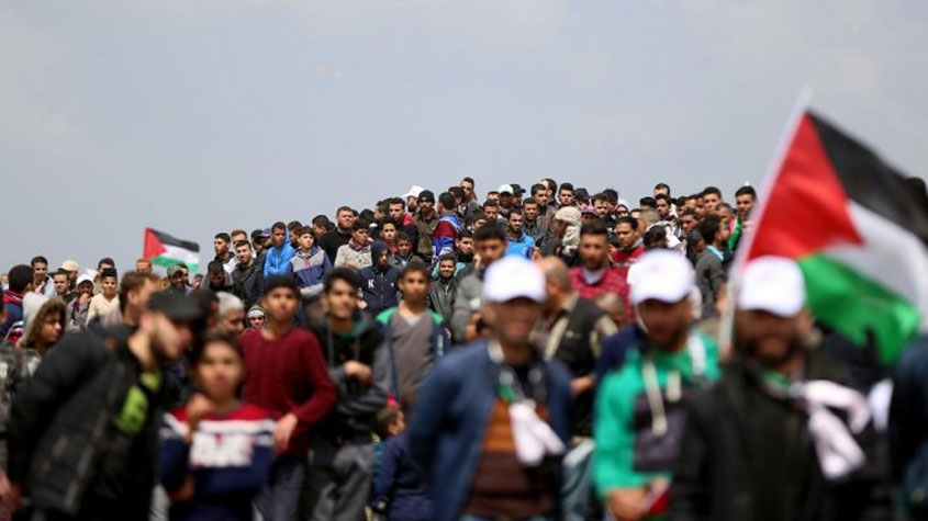 وبدأ المواطنون الفلسطينيون بالتوافد إلى الحدود الشرقية للقطاع، للمشاركة في المسيرة التي حملت عنوان "المقاومة توحدنا وتنتصر".