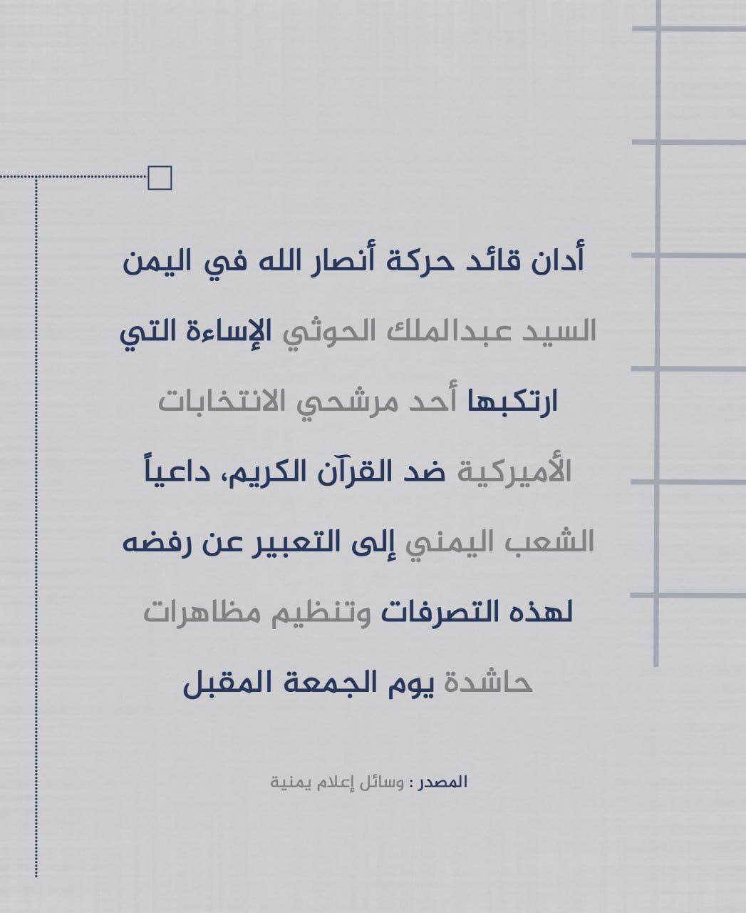 #متداول: السيد الحوثي يدعو اليمنيين للتحرك ضد الإساءة الأميركية للقرآن الكريم