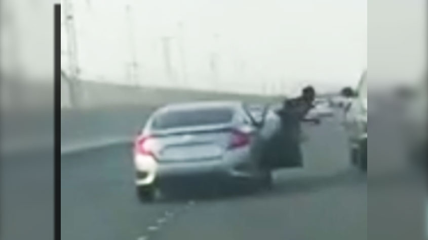 وأظهر المقطع الذي صور على طريق الحرمين باتجاه الشمال في محافظة جدة سائق (جيب فورتشونر) وهو يحاول تفادي سائق (هوندا سيفيك) الذي كان يحاول تعطيل حركته، في الوقت الذي خرج من نافذة سيارته الأمامية اليمنى شخص مرافق له وحاول الاعتداء على سائق الجيب.