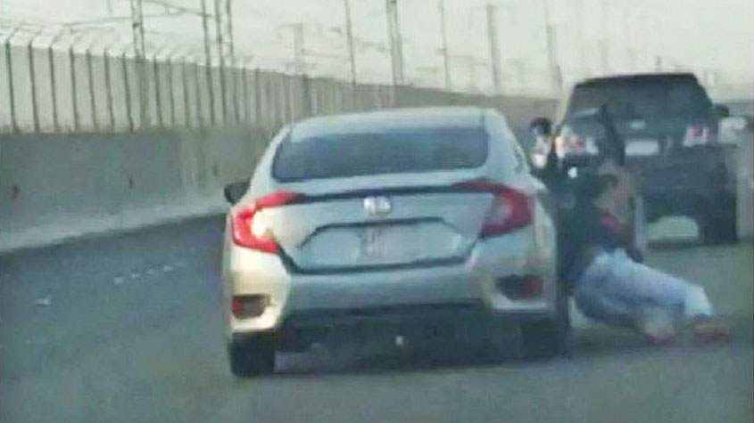 وذكر المرور في بيانه "إشارة إلى مقطع الفيديو الذي انتشر في وسائل التواصل الاجتماعي وفيه قائد مركبة من نوع هوندا سيفيك يقوم بمحاولة اعتراض وصدم مركبة أخرى من نوع تويتا على أحد الطرق الرئيسية بمحافظة جدة كما قام المرافق بالخروج من النافذة ومن ثم فتح باب المركبة وحي بحالة سير ومحاولته الاعتداء على قائد المركبة الأخرى ومن ثم فقد السيطرة على نفسه وسقوطه وسط الطريق معرضا نفسه والآخرين من مستخدمي الطريق لخطر كبير ".