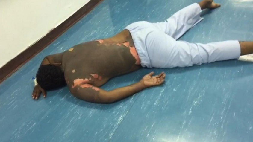 وقال المتحدث الرسمي لصحة بيشة "عبدالله سعيد الغامدي" إن المصاب الذي ظهر من خلال المقطع المصور، حضر إلى مستشفى تثليث العام يوم أمس الخميس، إثر سكب زيت حار عليه من زوجته نتيجة خلافات عائلية، وقد تم التعامل مع الحالة الطارئة حسب البروتوكول الطبي المتبع، مؤكداً استكمال الإجراءات اللازمة وتم التحويل فوراً حيث وصلت الحالة أمس الخميس، عند الساعة 2 ظهراً، إلى مستشفى الملك عبدالله ببيشة، والحروق من الدرجة الثالثة.