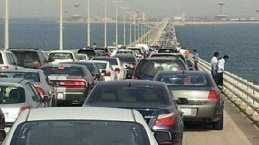 شهد جسر الملك فهد الحدودي الرابط بين السعودية والبحرين، زحاماً غير مسبوق، استمر يومي الخميس والجمعة، وامتد زحام المركبات إلى مسافات ملحوظة، وشوهد اصطفاف المركبات وراء منطقة الخدمات إلى أكثر من عشرة كيلومترات، في سابقة جديدة يشهدها الجسر الأكثر زحاماً على مستوى المملكة، وعلى رغم زحام جسر الملك فهد فإن جوازات المنطقة الشرقية لم توضح ما أسباب الزحام، الذي استمر يومين متتاليين.