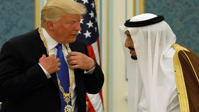 من جهته، أشاد ترامب بدور السعودية في استقرار الأوضاع في المنطقة وموقفها من طهران، وأكد على ضرورة التصدي "لخطر إيران الرامي لزعزعة الاستقرار في المنطقة".