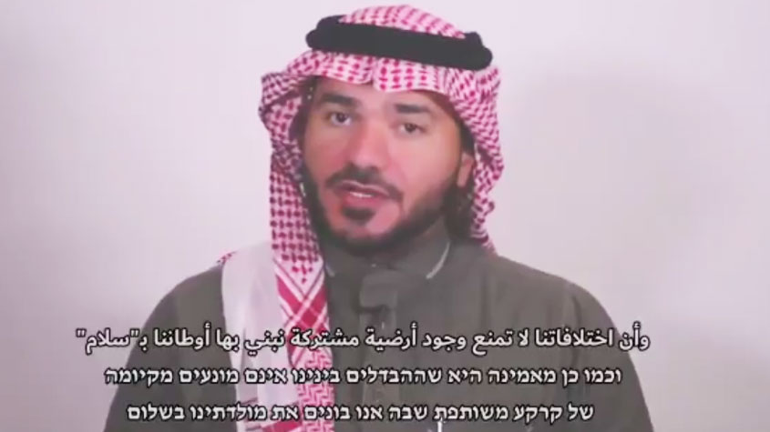 تداول ناشطون عبر مواقع التواصل الاجتماعي مقطع فيديو لصاحب مركز سعودي يدعى "سلام.. للتواصل الحضاري" يوجه رسالة للإسرائيليين باللغة العبرية، تحمل في مضمونها دعوة لتطبيع العلاقات بين المملكة ودولة الاحتلال.