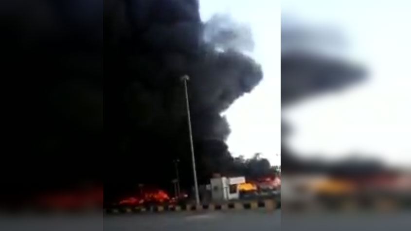 وتداول ناشطون مقاطع فيديو تظهر التهام النيران مستودعات وبضائع بكميات كبيرة، وقد انتشرت سحب  سوداء في سماء المنطقة.