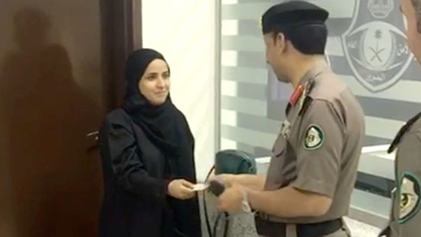 وتداول ناشطون على مواقع التواصل الاجتماعي في السعودية، مقطع فيديو يظهر إصدار أول رخصة قيادة لسيدة بالمملكة، حيث ظهر ضابط الشرطة وهو يسلمها الرخصة.