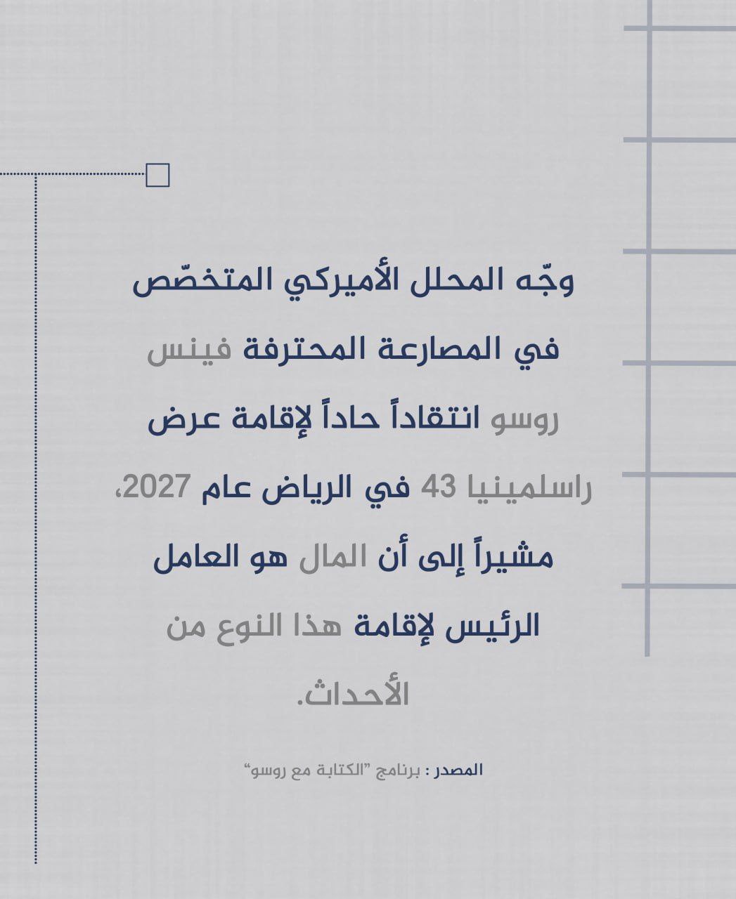 #متداول: انتقاد حاد لإقامة عرض راسلمينيا 43 في الرياض عام 2027