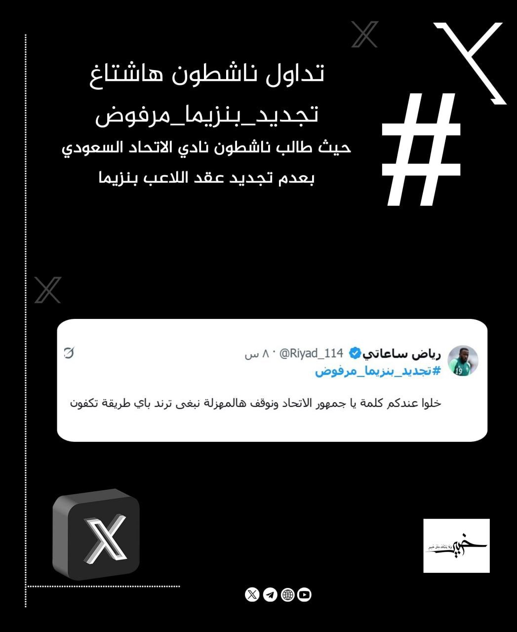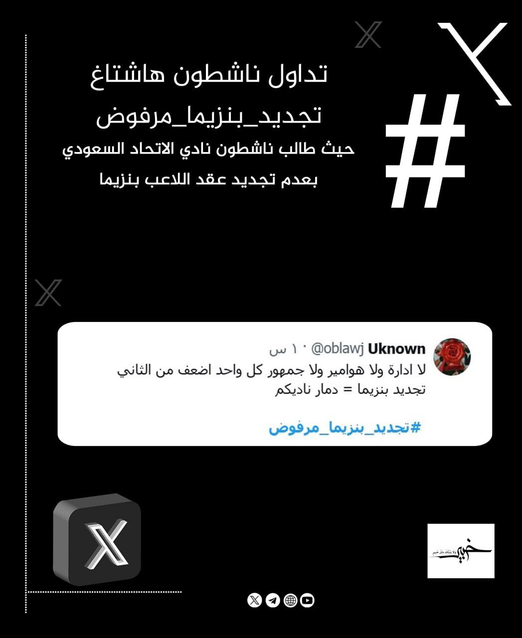 تداول ناشطون هاشتاغ #تجديد_بنزيما_مرفوض