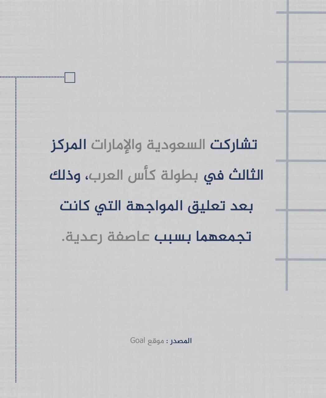 #متداول: السعودية والإمارات تتقاسمان المركز الثالث في كأس العرب بعد إلغاء مباراتهما