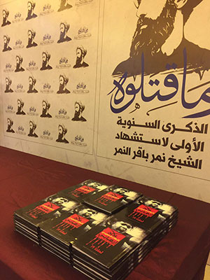 كما سيتم تدشين كتاب أخر وهو "الشيخ الشهيد نمر باقر النمر دراسة توثيقية" لسيرة الشيخ الشهيد ورصد لأبرز ردود الأفعال الإقليمية والدولية بعد حادثة الإعدام، من إصدار لجنة الدفاع عن حقوق الإنسان في شبه الجزيرة العربية.