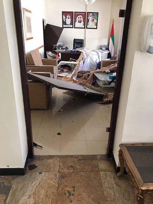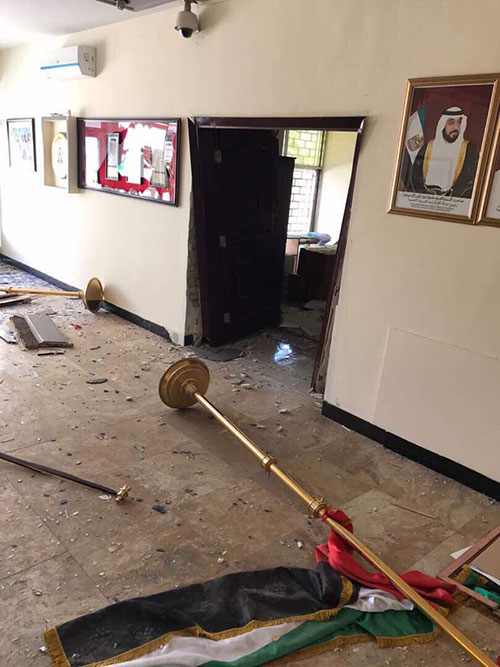 تداولت وسائل الإعلام صورا لمبنى سفارة الإمارات في كابول بعد إصابته جراء الهجوم الإرهابي في الحي الدبلوماسي صباح الأربعاء.