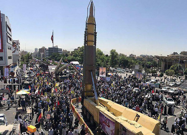 وخلال مسيرة طهران عرض الحرس الثوري الإيراني نماذج من صواريخ " قدر " و " ذو الفقار " وهي صواريخ باليستية.