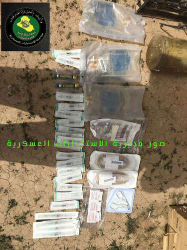 كما أفادت المديرية بأنها وجدت مستلزمات طبية تستخدم لعلاج المصابين وإجراء الإسعافات الأولية والعمليات الصغرى.