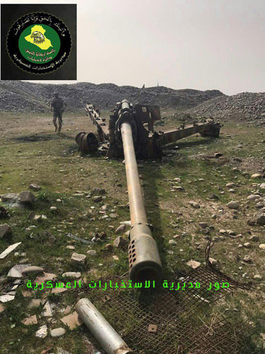 تمكن رجال مديرية الاستخبارات العسكرية في فرقة المشاة 20، إثر ورود معلومات استخبارية دقيقة، من ضبط مدفع ثقيل من عيار 130 ملم كان تنظيم "داعش" يستخدمه لإعاقة تقدم القوات العراقية.