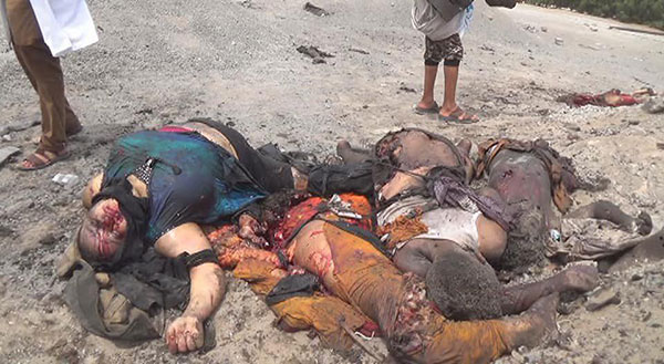 مجزرة جديدة لـ #التحالف_السعودي معظم ضحاياها من الأطفال والنساء على مخيم النازحين بـ #الحديدة (صور)