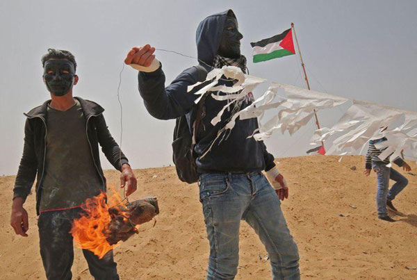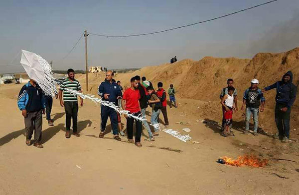وانتشرت صور لأطفال وبالغين بصدد إطلاق طائرات ورقية في سماء غزة على شكل علم فلسطين، تحمل زجاجات حارقة، أحرقت خلال الأيام القليلة الماضية عشرات الدونمات الزراعية في الجانب الإسرائيلي المحيط بالقطاع.