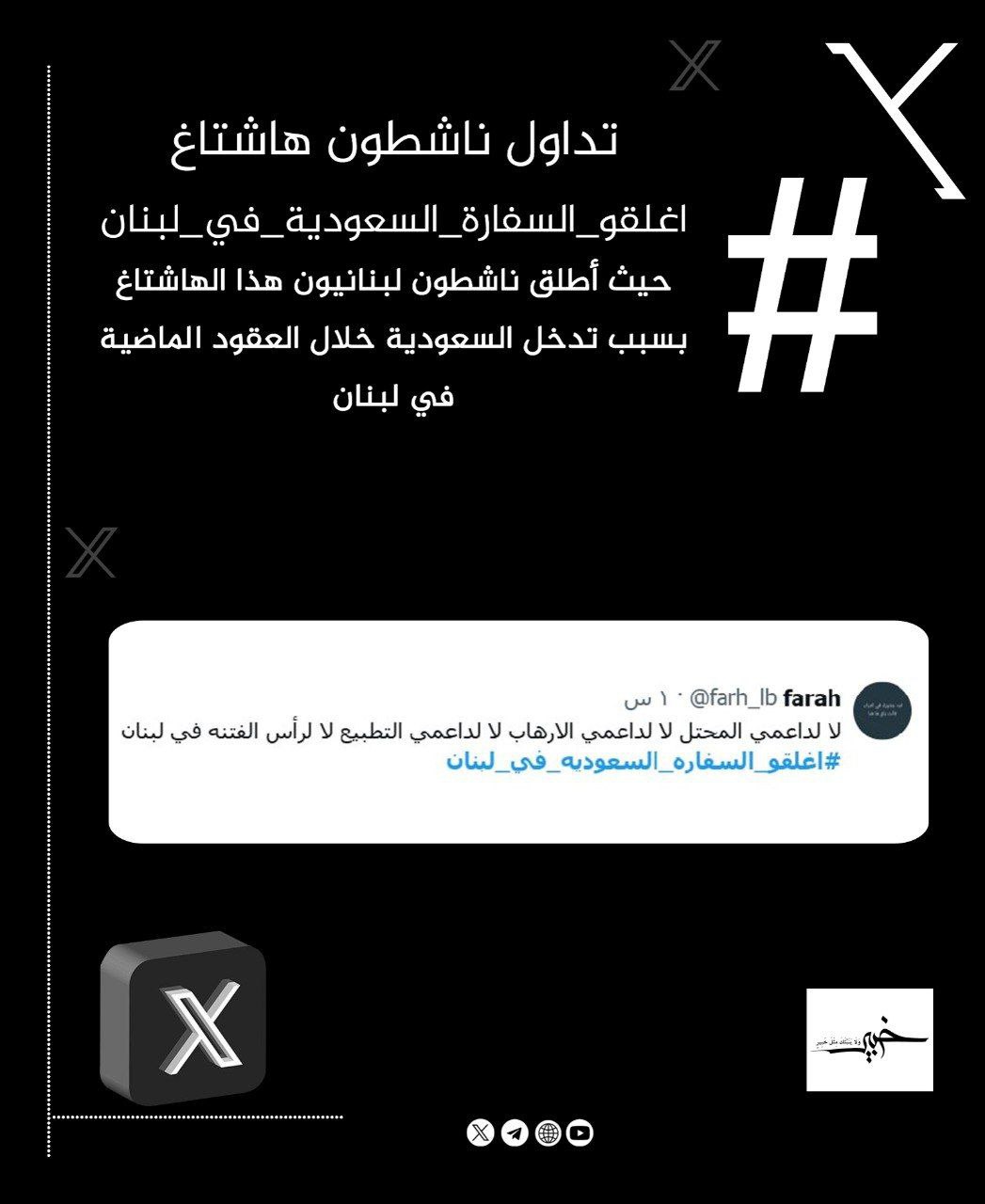 تداول ناشطون هاشتاغ #اغلقوا_السفارة_السعودية_في_لبنان
