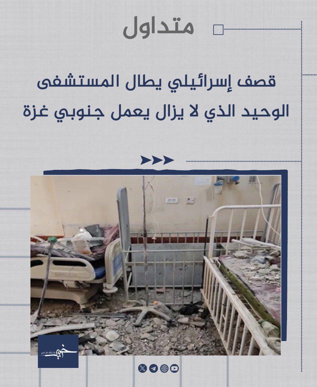 #متداول: قصف إسرائيلي يطال المستشفى الوحيد الذي لا يزال يعمل جنوبي غزة