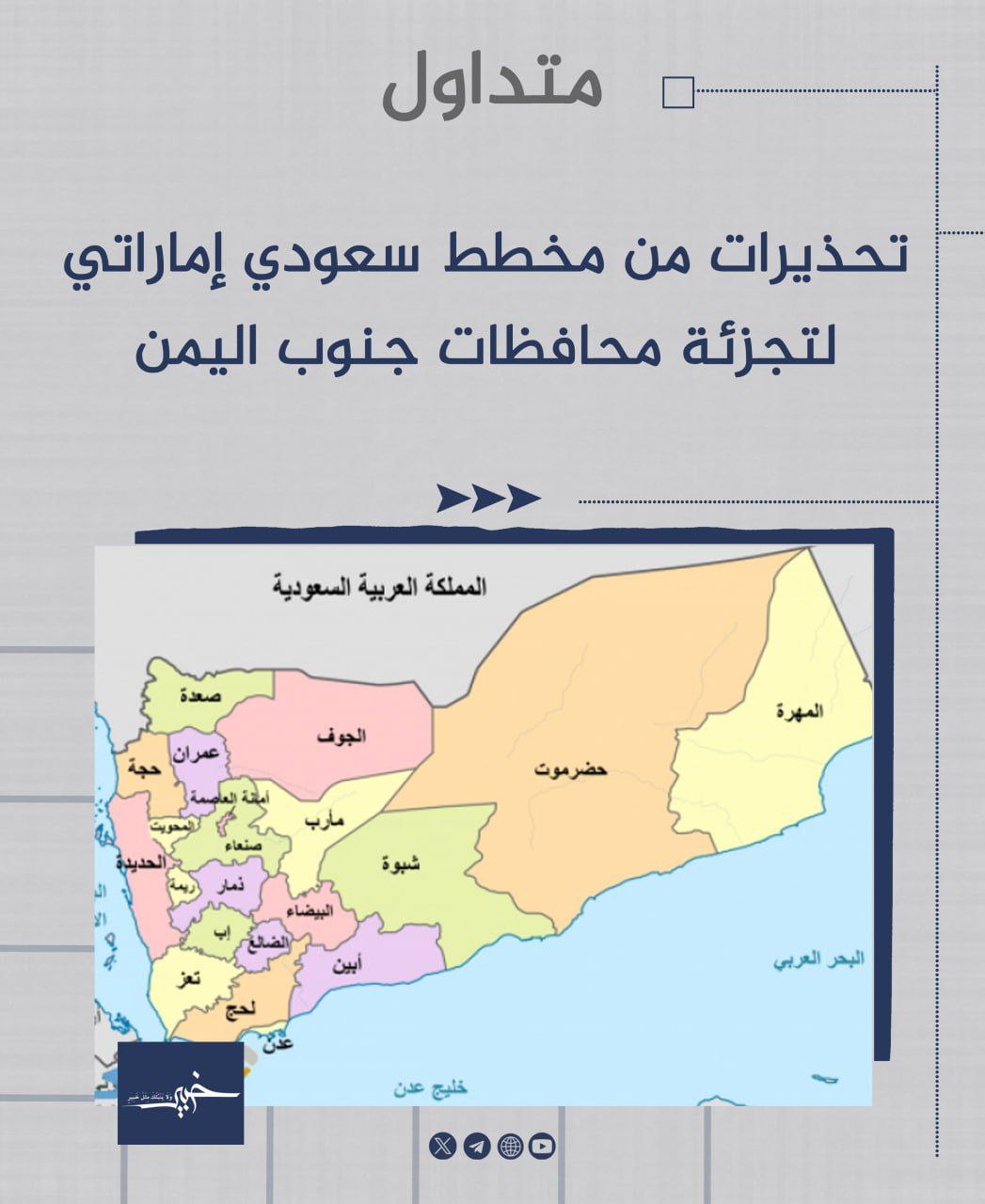 #متداول : تحذيرات من مخطط سعودي إماراتي لتجزئة محافظات جنوب اليمن
