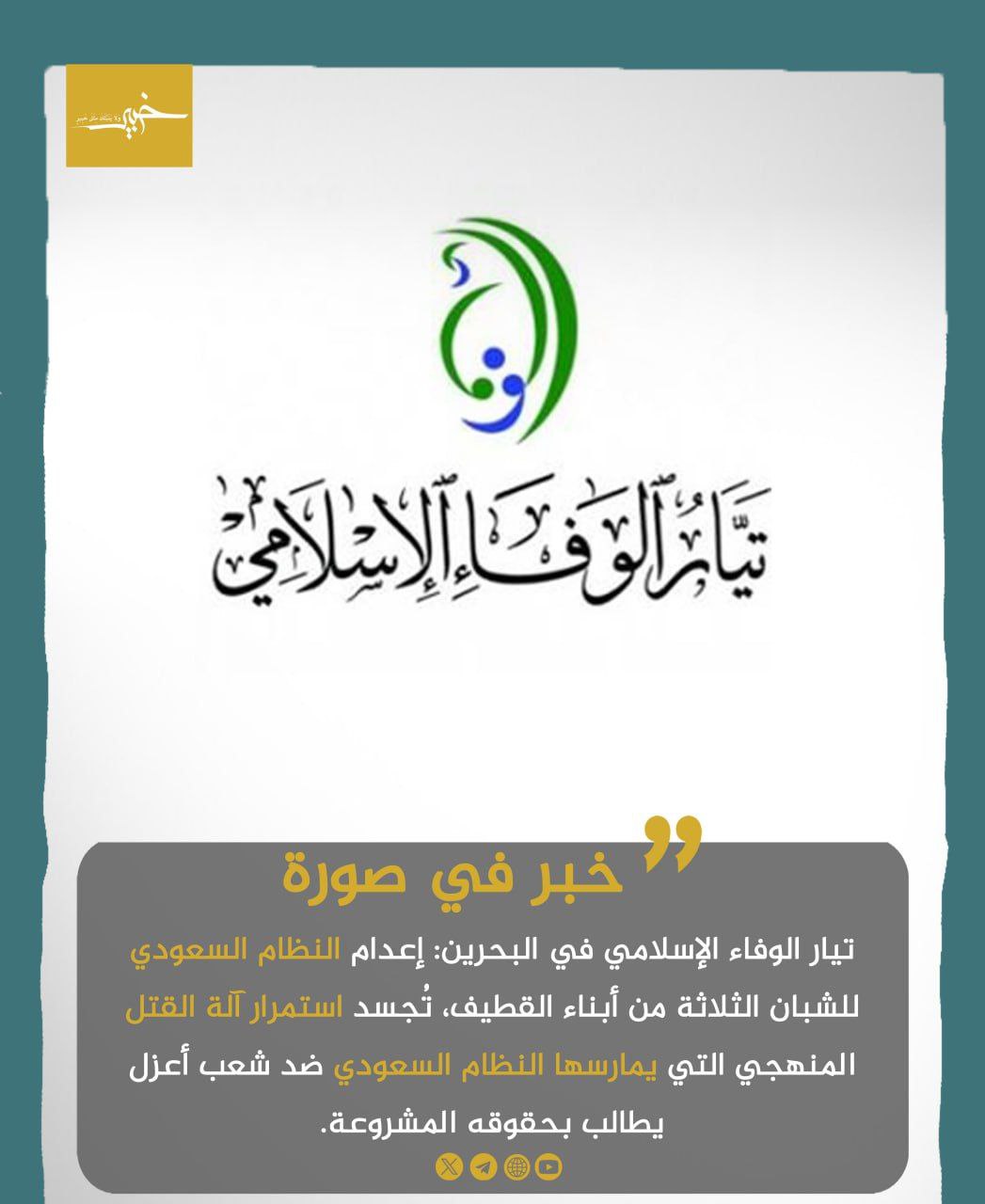 #خبر_في_صورة: تيار الوفاء الإسلامي في البحرين يدين إعدام الشبان الثلاثة من أبناء القطيف