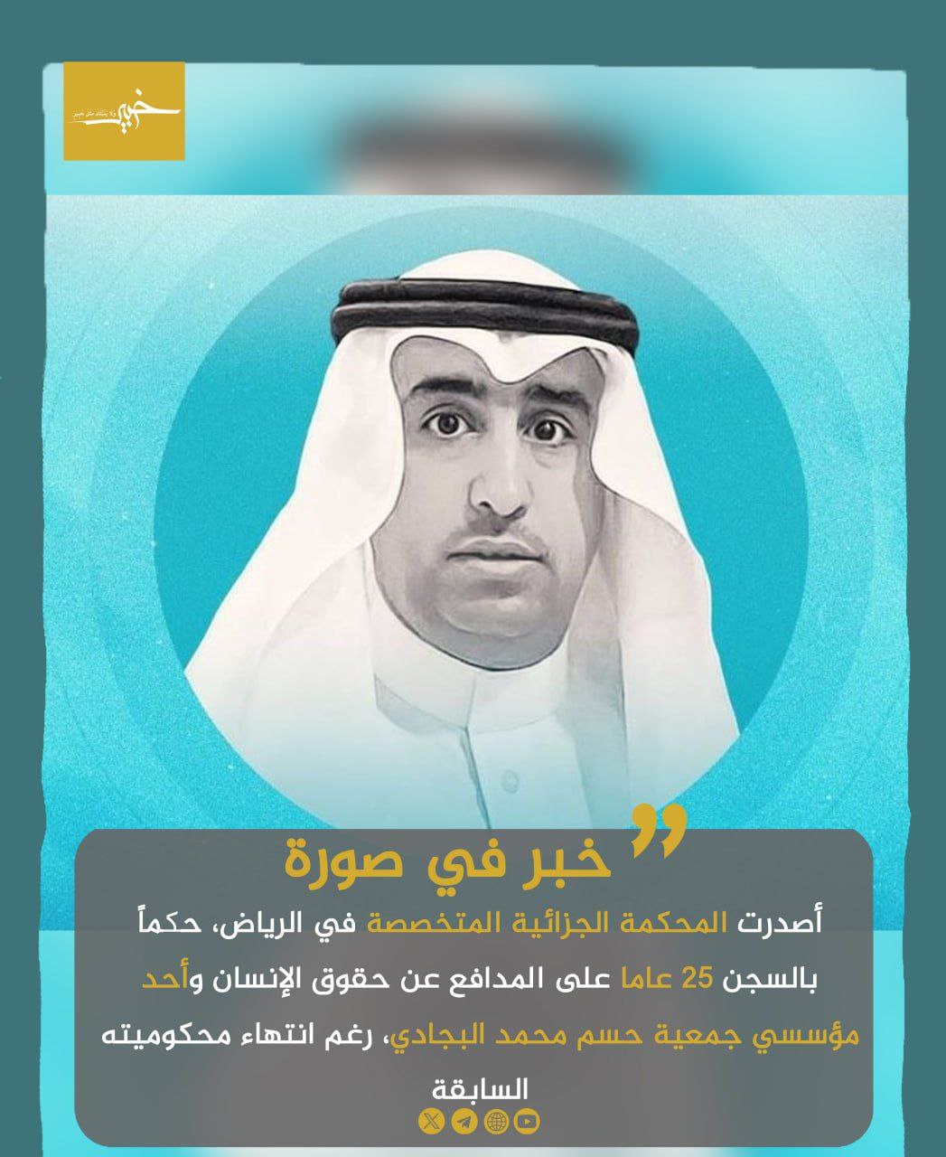 #خبر_في_صورة: السعودية تحكم بالسجن 25 عاماً على الناشط الحقوقي محمد البجادي