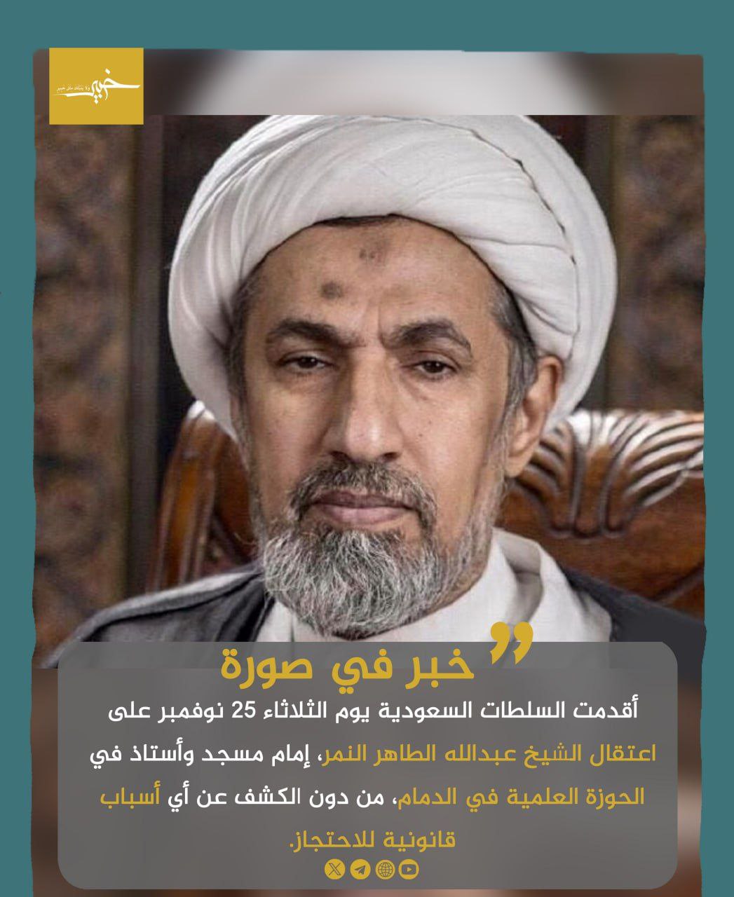 #خبر_في_صورة: اعتقال الشيخ عبدالله الطاهر النمر في الدمام