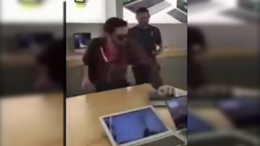 بالفيديو : رجل يحطم أجهزة داخل متجر « #آبل » في #فرنسا