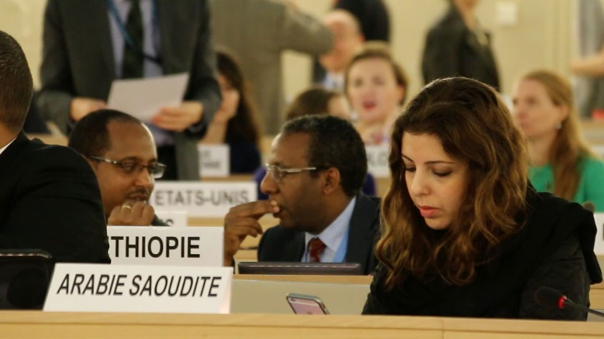 ممثّلة “خادم الحرمين الشريفين” في مجلس حقوق الإنسان حاسرة الرأس!
