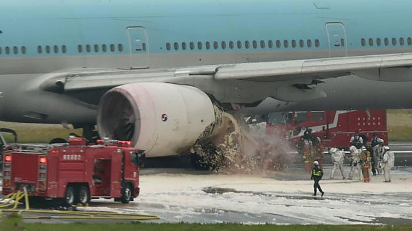 إخلاء طائرة كورية بعد اشتعال النار في محركها بمطار #طوكيو