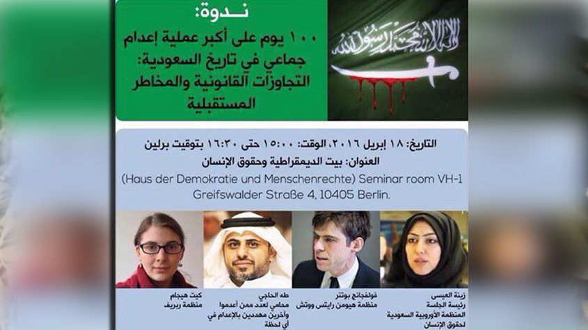 إقامة ندوة في’ #برلين’ بمناسبة مرور 100 يوم على أكبر إعدام جماعي في تاريخ #المملكة السعودية