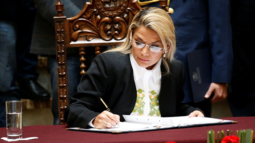رئيسة #بوليفيا المؤقتة توقع قانون انتخابات رئاسية جديدة