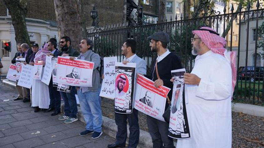 تظاهرة احتجاجية أمام السفارة #السعودية في #لندن على مقتل #خاشقجي واستمرار الحرب على #اليمن