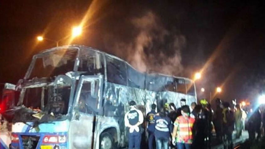 مقتل 20 مهاجرا من #ميانمار بحريق حافلة في #تايلند