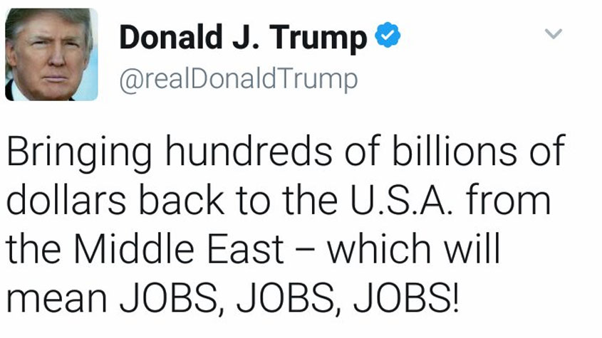 #ترامب منتشيًا: جنيت مئات مليارات الدولارات من الشرق الأوسط!
