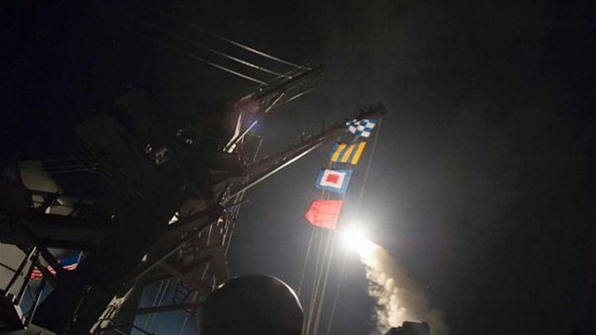 بالصور #الولايات_المتحدة تطلق عشرات الصواريخ على قاعدة جوية في #سوريا