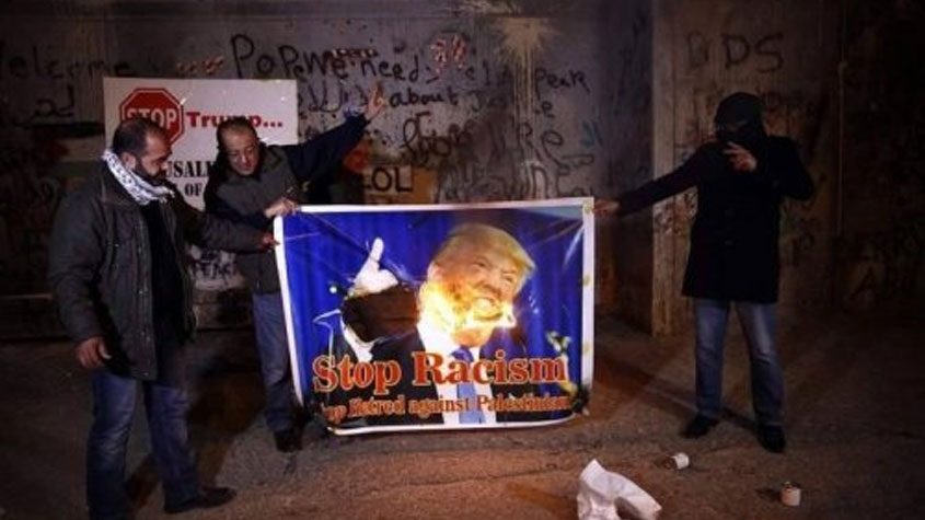 #فلسطين: نشطاء يحرقون صورا لـ #ترامب