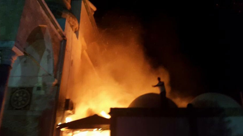 حريق هائل في مسجد تاريخي في مدينة #عكا بـ #فلسطين