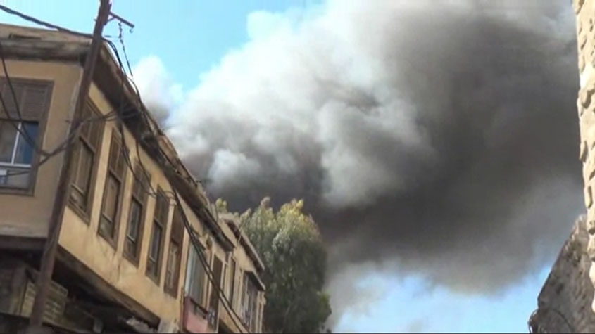 حريق هائل يلتهم محلات تجارية #بدمشق القديمة