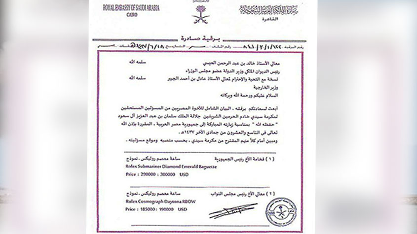 ’وثيقة’: الرئيس المصري ووزراء حكومته وأعضاء البرلمان “تلقوا رشاوى من المملكة #السعودية”