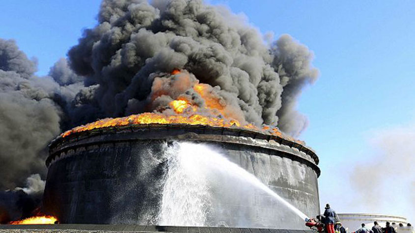 حرائق هائلة في خزانات نفطية ليبية بعد قصف تنظيم ’الدولة الإسلامية’ لها