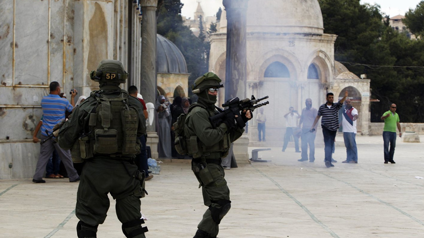 قوات الاحتلال تقتحم مسجدا بـ #القدس بهدف إنزال علم #فلسطين أعلى قبته وتعتقل شابين