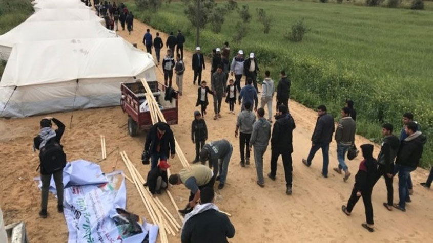 الفلسطينيون يتوافدون لخيام العودة استعداداً لـ"جمعة الشباب الثائر"