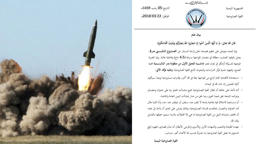 #اليمن.. القوة الصاروخية تصدر ’’بيان هام’’ يزيح الستار عن ’’الصاروخ الباليستي بدر1’’ الذي استهدف # أرامكو اليوم