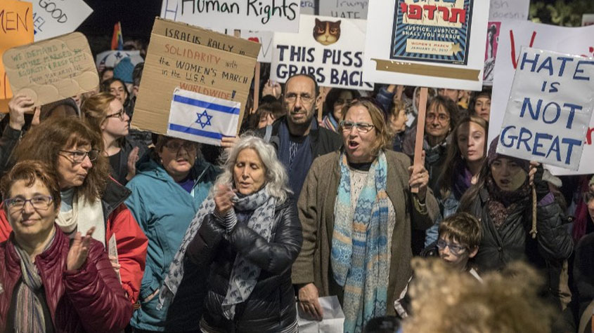 مظاهرة أمام السفارة الأمريكية في #تل_أبيب ضد قرار #ترامب