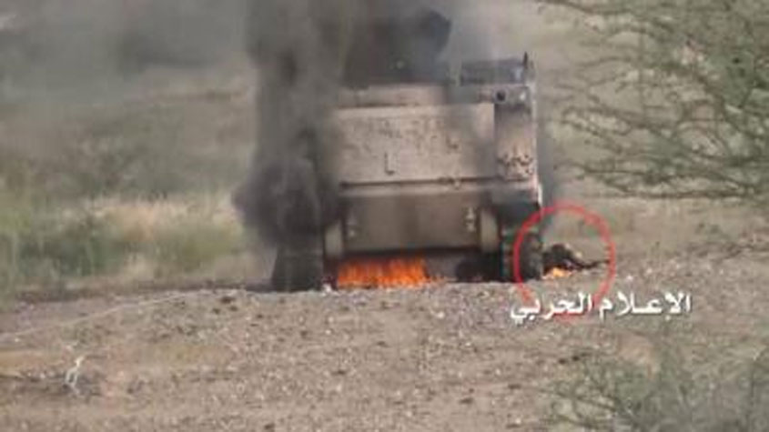 الجيش اليمني واللجان الشعبية يعلنون تدمير آلية عسكرية سعودية محملة بالجنود بصاروخ في #جازان