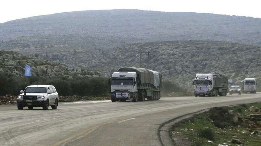 قوات روسية ترافق قافلة مساعدات إنسانية في ضواحي #دمشق